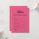 Apresentando o "Advice For the Bride and Groom", um jogo de chá de panela sensato e significativo que transcende o entretenimento, fornecendo uma plataforma segura e sem confronto para a família, amigos e entes queridos compartilharem seus incríveis conselhos e desejos com o casal feliz. Colocadas contra um fundo cor-de-rosa-escuro cativante, as palavras "Conselho para a noiva e o noivo" são escritas elegantemente numa bonito letra preta, expondo um sentimento de sofisticação e charme, fazer-o como uma adição perfeita a qualquer celebração. Ao contrário dos jogos convencionais que apenas entretêm, o "Conselho para a Noiva e o Grupo" cria uma experiência duradoura e apreciada. À medida que o casal embarca em sua nova jornada juntos, eles podem coletar e valorizar essas mensagens sentidas não apenas durante o chá de panela ou chá de casamento, mas ao longo de sua vida casada. Com a opção de fazer pedidos de cartões impressos profissionalmente ou comprar a versão digital para autoimpressão, este jogo oferece conveniência e personalização, garantindo que se torne uma parte significativa e personalizada do seu dia especial. Cada cartão apresenta cuidadosamente espaços designados para os convidados partilharem os seus conselhos sob diferentes títulos: "Sempre", "Às vezes" e "Nunca", oferecendo uma gama diversificada de ideias para guiar o casal na sua viagem ao longo da vida em conjunto. A seção "Não se esqueça" serve como um gentil lembrete de conselhos essenciais, enquanto o espaço "Desejo a Ambos" se torna uma coleção sincera de bênçãos e aspirações, significando o amor e a esperança de todos presentes. Na parte inferior de cada carta, a palavra "Amor" aguarda, convidando convidados a assinar seus nomes, acrescentando um toque pessoal de afeto e apoio. Essas cartas completadas se tornam uma bela e sentimental coleção, capturando o amor e a sabedoria compartilhados por familiares e amigos, fazer-a um tesouro apreciado para o casal revisitar e tesourar ao longo dos anos. "Advice For the Bride and Groom" eleva o tradicional jogo de chá de panela, promovendo uma conexão sincera entre o casal e seus entes queridos. Aproveite a alegria de compartilhar amor e sabedoria com este jogo, fazer-o uma parte essencial de suas celebrações. Que as palavras dos vossos queridos sejam uma fonte constante de inspiração para o casal enquanto leem e apreciam estas mensagens corajosas, tanto agora como durante todos os belos anos que se avizinham.