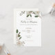 Este elegante design de casamento exumenta a sofisticação do eterno com seus elementos florais suaves e estilo minimalista. As flores brancas de magnólia e verde graciosamente enquadram o convite, criando um olhar romântico e refinado. O esquema de cores é uma mistura harmoniosa de marfim macio, verde suave e marrom quente, o que aumenta a sensação natural e clássica do design. As fontes usadas incluem um script de na moda para os nomes dos casais, adicionando um toque pessoal, enquanto o resto do texto apresenta uma fonte serif limpa e moderna, garantindo a legibilidade e um senso de luxo subestimado. Perfeito para casamentos tradicionais e temáticos rústicos, este convite dá o tom para uma bela e memorável celebração. F003