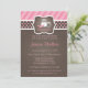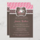 Adoráveis convites de açúcar e especiarias, cor-de-rosa e marrom, e dois potes bonitos - um com açúcar e outro com especiarias e pimenta quente. O convite tem bolinhas e listras para fazer um convite para chás de fraldas divertido e chique.