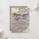 Açúcar e especiarias e tudo o que é bom Cartões de Convite para Chás de fraldas Modelos - Rosas brancas Floral e Luzes de Cordas no Fundo Russo de Madeira. Todo estilo de texto, cores, tamanhos podem ser modificados para ajustado das suas necessidades!