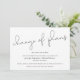 Adiar um grande evento como o seu casamento pode ser estressante, mas você ainda pode olhar na moda com esta mudança moderna e minimalista de planos de modelo. Ele diz "mudança de planos" no texto escrito à mão no topo do script, seguido de suas informações de eventos e arrependimentos.