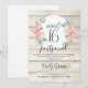 Certifique-se de notificar seus convidados de eventos adiados com este belo cartão com madeira rústica clara apresentando flores em aquarela que é o par perfeito para o convite de aniversário de 16 anos com o mesmo tema.