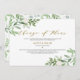 Mudança de planos! Anuncie à sua família e amigos o adiamento do casamento com este cartão de casamento verde. Apresenta ilustrações de aquarela de verde, flores brancas e roteiro elegante. Personalize adicionando seus nomes e outros detalhes. Este cartão verde de adiamento do casamento também será perfeito como um anúncio do elopemento.
