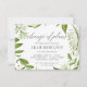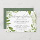 Anuncie sua data de chá de panela adiada ou reprogramada com esses cartões elegantes. O convite de "mudança de planos" botânico apresenta uma borda de folhagem botânica e verde. Personalize com seus detalhes de chá reprogramados.