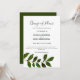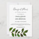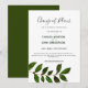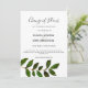 Este anúncio de adiamento de casamento simples e bonito apresenta uma única folha botânica em aquarela sobre um fundo branco e caligrafia manuscrita. A parte de trás do cartão apresenta um verde sólido. Perfeito para o casamento simples boho ou de jardim. Itens coordenados disponíveis na minha coleção de Casamento Minimalista Simples na minha loja Zazzle: