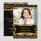Adicione o Convite de aniversário Dourado do Damasco Preto Fotográfico, Bolsa mensageifesta de aniversario elegante. Personalize com seus próprios detalhes. RSVP correspondente disponível.