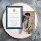 Este monograma clássico de convite para casamento mostra uma falsa borda de folha de ouro e círculo na frente e no verso onde você pode adicionar sua foto. Este convite também tem uma cor de fundo editável; para alterá-lo de azul para a cor de sua preferência, clique no botão personalizar e altere a cor de fundo frontal. Veja outros itens de casamento correspondentes aqui https://www.zazzle.com/collections/editable_color_gold_round_monogram_wedding_3-119510628617321222 Personalize-o substituindo o texto do marcador de posição. Para obter mais opções, como alterar a fonte, seu tamanho e espaçamento entre letras, clique no botão "Personalizar". *Observe que a Marca d'água do Zazzle que aparece na visualização de zoom NÃO aparecerá no produto impresso final. © Rosewood e Citrus