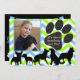Os cães design convidam apresentam uma grande impressão em pata preta, listras de fêmur de cães da silhueta azul, verde e branco e pretos de várias raças com uma área que você pode adicionar a foto do seu filho! O texto na frente lê Vamos se diverte muito! O convite de volta é preto com bandeiras de banner e texto de branco, verde, azul e roxo e é fácil de personalizar com todas as suas especificações de festa de aniversário. As costas também têm pegadas brancas e design de ossos.