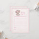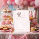 Urso-bebê marrom e rosa adorável para o chá de fraldas de uma menina. Adivinha Aquele jogo de chá de fraldas de Comida. Cobertura cor-de-rosa com borda pontilhada rosa para fundo. Modelos fornecidas atrás.