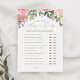 Peça aos chás de fraldas que participem de um jogo de 'Adivinhem Quem: Mamãe ou Pai com este cartão elegante de jogo, com tipografia dourada e flores cor-de-água cor-de-rosa-rosa-claro.
