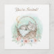 This dreamy invitation features an adorable baby wolf pup fast asleep on a golden crescent moon. Set against a soft pastel blue night sky with gentle clouds and twinkling stars, this serene design perfectly welcomes the 'little dreamer' on the way.