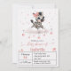 Cute girl baby shower invitation featuring adorable little female zebra wearing a cute pink bow with some love hearts