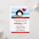 Um pinguim giro segurando um balão vermelho. #valentinesday #convites #pinguim #coração