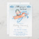Este design de convite para chá de fraldas de apresenta um adorável pinguim voador com elegante tipografia azul para a celebração de um menino. É bonito, encantador e divertido. você pode personalizar este chá de fraldas adicionando seus próprios detalhes do chá de fraldas.