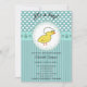 Cartoon engraçado adorável, bebê galinha azul bebê chá de fraldas convite para design.