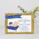 Chá de fraldas de príncipe azul e dourado com príncipe bebê fofo em um travesseiro com uma bonito coroa de ouro sobre um belo fundo damasco dourado. Você pode remover a cor de fundo e adicionar a cor de sua escolha. Você pode personalizar facilmente este adorável convite de chá de fraldas príncipe para seu evento simplesmente adicionando seus detalhes no estilo de fonte e na redação de sua escolha. Este é um design impresso sem brilho real, etc.