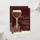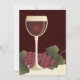Uma bela taça de vinho de vinho tinto, feita à mão, é aninhada entre polos de uvas tinto deliciosos, um design perfeito para uma celebração de janto de ensaio com tema de vinho. Quando o casal adora vinho, se a festa ou o casamento é em um vinhedo, ou em um país de vinho, este design elegante vai dar o palco para uma bela celebração do grande evento que se avizinha. O copo de vinho é delicadamente sombreado e possui uma linda variedade vermelha, como uvas maduras, derramares sobre um fundo castanho de chocolate rico e profundo. Oferecida aqui no estoque básico de papel, este design também seria especialmente maravilhoso em linho ou feltro.