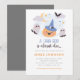 Celebre seu pequeno abóbora a caminho com este adorável convite de chá de bebê de Halloween Little Boo! Perfeito para um chá de bebê de outono, este charmoso design apresenta uma abóbora sorridente em um chapéu de bruxa azul rodeada por fantasmas fofos, morcegos, estrelas e uma lua crescente. O tema pastel de Halloween divertido e alegre combina estilo caprichoso com charme sazonal, tornando-o ideal para futuras mamães que amam detalhes festivos e femininos.