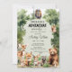 Adorável Aventura Aguarda o convite para chás de fraldas de animais nas terras altas - perfeito para uma celebração divertida e selvagem! Apresentando animais bonitos em uma viagem colorida de carro, este convite dá o tom para um evento inesquecível.