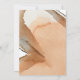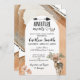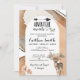 O presente convite inclui uma área de madeira com elementos florais e fundo de aquarela.