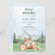 Adventure Aguarda Woodland Animal Chá de fraldas Invitation é o toque perfeito para seu chá de fraldas! Adicione seu próprio código QR para obter detalhes extras na parte traseira.