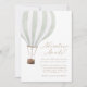 Convide amigos e família para compartilhar a alegria da chegada do seu pequeno com este chá de fraldas, com um balão de ar quente verde sábio e uma elegante tipografia de ouro.