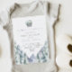 Este belo convite para o chá de fraldas "Aventura Espera" é perfeito para aqueles que amam a natureza e a aventura. Apresentando uma serena design de aquarela com montanhas de neve, pinheiros e um globo de neve, cria um tema brilhante, inspirado no inverno. Ideal para chá de fraldas de inverno, esta elegante e moderna design dá o tom para uma celebração acolhedora.
