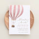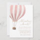 Convide amigos e família para compartilhar a alegria da chegada do seu pequeno com este chá de fraldas, com balões de ar quente cor-de-rosa e elegante tipografia de ouro.