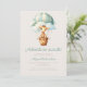 Este belo convite para chás de fraldas apresenta uma girafa de aquarela doce num balão azul turquesa de ar quente listrado, acima das palavras "Aventura aguarda!" em roteiro de turquesa. Personalize o texto com o nome da futura mãe no script e os detalhes na fonte sans serif em um fundo bege. O verso oferece espaço para fralda, livros para bebê e detalhes do registro, juntamente com um conveniente código QR que os convidados podem digitalizar para visitar o registro. Ideal para um chá de fraldas neutro em termos de gênero.