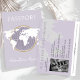 Viagem com o tema Gênero, Convite para Chá de fraldas Neutro do Passport com lavanda flexível, ilustração do globo com ênfase em ouro e detalhes de evento personalizáveis.