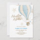 Aventura Aguarda o primeiro convite de aniversário do garoto. O primeiro aniversario do Boho de Beige Blue Air Balloon. Design apresenta nuvens e estrelas flutuantes de balão de ar quente de cor d'água. O primeiro convite de aniversário do Blue Boho.