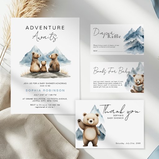 Convites Adventure Awaits Mountains Forest Baby Shower