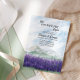 A Aventura Inicia o Convite ao Chá de Casais, o cenário perfeito para uma estância de casamento de montanha ou um casamento de destino no interior cênico. A design apresenta a tipografia moderna e uma paisagem de aquarela idílica. A cena da cordilheira de montanha sonhadora retrata montanhas, colinas verdes e um campo pacífico do vale do país com banheiras de lavanda, flores silvestres roxas ou madeiras altas - o que quer que fale com você e seu destino escolhido. Para coordenar convites, papelaria e decoração do dia do evento, por favor, navegue na minha Coleção de Casamentos de Lavandas de Montanha ou me mande mensagens para adicionar quaisquer itens adicionais de que você precise.