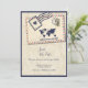 Coleção de Casamento de Destino Russo Internacional de Aventura Este design capta o espírito de luxúria e amor, misturando estética viagens vintage com encanto rústico. Apresentando faixas clássicas de correio aéreo em vermelho e azul, tons bege mudados, e texturas sutis de mapa, evoca a sensação de partir numa grande jornada romântica. Elementos como selos postais, detalhes do mapa mundial e retrorreflectores tornam-no perfeito para casais que sonham com uma celebração global cheia de aventura, conexão e elegância eterno. Esta design faz parte de uma coleção de casamento personalizável. Eu posso ganhar uma pequena comissão através de compras feitas através de links de referência de mídias sociais.