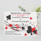 Afortunado em convites do jantar de ensaio do amor com um design de jogo do tema do casino em preto e branco e em vermelho. Os cartões de jogo com clubes, pás, corações, e diamantes são parte do convite moderno corajoso art.