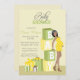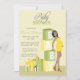 Características deste design neutras do género original uma mamã grávida do afro-americano que está perto de uma torre dos blocos e dos presentes do chá de fraldas.