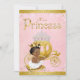 Convite de chá de bebê de princesa afro-americana com adorável bebê princesa sentada em uma almofada dourada usando uma linda coroa dourada e pérolas em um carrinho de princesa em um fundo rosa e dourado. Este lindo convite de chá de bebê de princesa afro-americana é facilmente personalizado para o seu evento, basta adicionar seus detalhes no estilo de letra e redação de sua escolha. Este é um design impresso sem jóias reais, brilho, laços, etc.