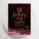 Borgonha e ouro agata 19º convite de aniversário. Elegante design moderno com aquarela agate marble geode background, faux glitter gold e typografia script font. Trendy convida o cartão perfeito para uma comemoração de dia das mulheres na moda. Impressos convites Zazzle ou modelo de impressão digital instantânea para download.