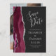Este elegante e moderno salve a placa de data apresenta uma cor d'água borrifada agate border com falso brilho prateado. O texto da cinza prateada aparece em fundo preto. Substitua facilmente a imagem de amostra no lado oposto por uma foto vertical da futura noiva e noiva.