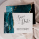 Convites Agate Elegante Azul Teal Dourado Salvar Data