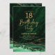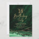 Verde esmeralda e ouro agate 18º convite de aniversário. Elegante design moderno com aquarela agate marble geode background, faux glitter gold e typografia script font. Trendy convida o cartão perfeito para uma comemoração de dia das mulheres na moda. Impressos convites Zazzle ou modelo de impressão digital instantânea para download.