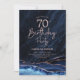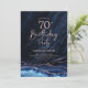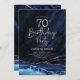 convite de aniversário marinho azul e rosa dourado 70. Elegante design moderno com cor azul-real de água agate marble geode background, faux glitter rosa gold e typografia script font. Trendy convida o cartão perfeito para uma comemoração de dia das mulheres na moda. Impressos convites Zazzle ou modelo de impressão digital instantânea para download.