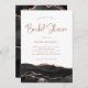 Estes convites de chá de panela elegantes e bonitos apresentam um aspecto geode preto-chic, com sotaques dourados-rosa faux e caligrafia correspondente.