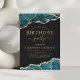 Convites de festas de aniversários de Agate Geode Black and Turquoise Teal Blue and Gold Foil - inclui um roteiro moderno e elegante para o especial Qualquer 13 de Idade, 15, 16º, 18º, 21ruas, 30, 40º, 50º, 60º, 70, 80, 90 ou 100º aniversário.
