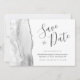 Este elegante moderno salve o cartão de data apresenta uma cinza e uma cor d'água branca, aparada com falso brilho prateado. O texto personalizável combina o script de escrita manual, as fontes em copperplate e itálico em cinzas de carvão em um fundo branco. O verso apresenta uma cinza correspondente, design branco e agata prateada.
