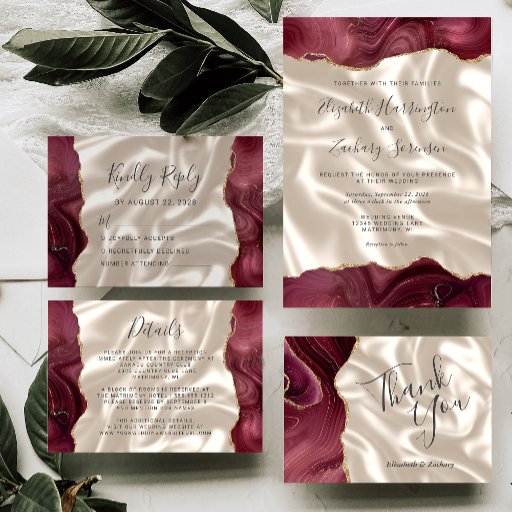 Burgundy Gold Agate Ivory Silk Wedding SuiteCriado por Akhates Designs