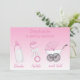 Convites personalizados para bebês. O Shake, o Rattle e o Roll na moda são convidados para chás de fraldas de meninas. Lindas cores rosa e brancas personalizam convites para bebês com um tema moderno e moderno Shake, Rattle and Roll com um olhar retrô vintage de 1950 / sentir com a carruagem clássica, e bebês eternos chocam e bebem. Fundo elegante, elegante, de gradiente cor-de-rosa a branco, com biberões bonitos, chuvas de bebê glamourosas com arcos, e carruagem/carrinhos cor-de-rosa-cinza. chá de fraldas clássico / sprinkle de bebê / casais convites para chás para meninas. Esses convites para chás de temas adoráveis, bonito, divertidos e vibrantes são impressos/decorados em ambos os lados / têm impressão frente e verso - há mais imagens no verso com texto personalizável / personalizável para seus detalhes do chá. Uma das tendências mais quentes do chá de fraldas para 2014. Observe que: Todos os convites no Zazzle têm imagens impressas em formato plano. Se precisar de assistência para personalizar o seu produto, entre em contato comigo pela loja e terei todo o prazer em ajudar. O texto é totalmente personalizável/personalizável para atender às suas necessidades. Trabalhos originais de arte ©delightful-doodles.com e Jean Gordon no craftsuprint.