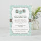 design de chá de fraldas de SHAKE RÁPIDO e ROLL com garrafa de bebê, carruagem de chocalho e bebê e pequenos corações. Fundo de bolinhas azul e branco. Personalize-o com seu próprio texto personalizado. PinkInkArt original!