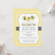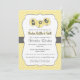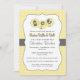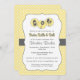design de chá de fraldas de SHAKE em cinza e amarelo com garrafa de bebê, carruagem de chocalho e bebê e corações pequenos. Fundo de bolinhas amarelo e branco. Personalize-o com seu próprio texto personalizado. PinkInkArt original!