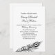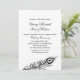 Uma luz, pena wispy do pavão decora este convite em uma maneira nova chique. Este convite do casamento é parte da agitação completa da coleção do casamento suas penas de cauda, e está disponível em diversas cores diferentes. Mostra-se aqui no papel básico; contudo eu recomendo o peso e a textura do papel de linho.